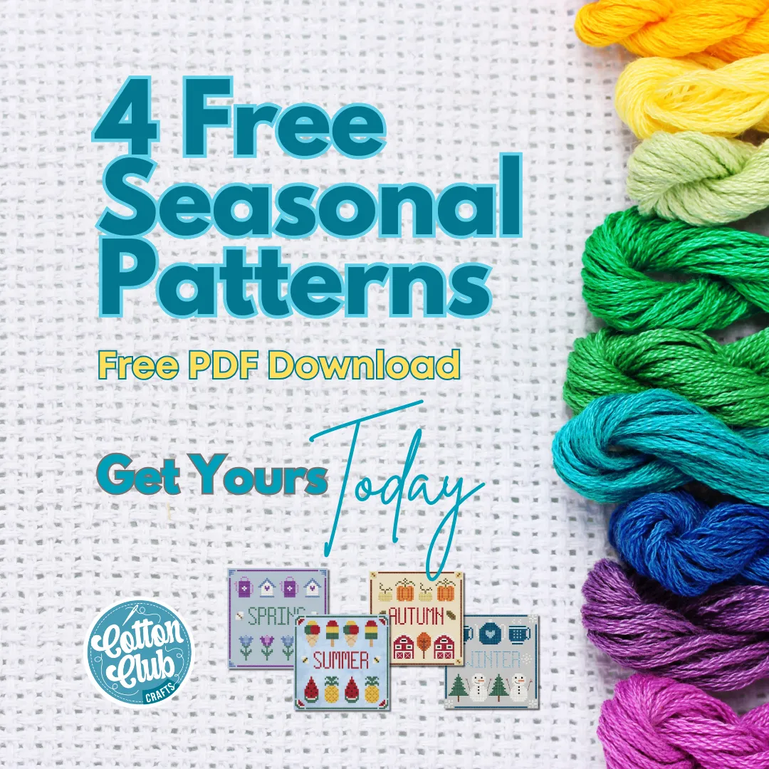 Instantly download your PDF and start stitching Spring, Summer, Autumn, and Winter designs today.